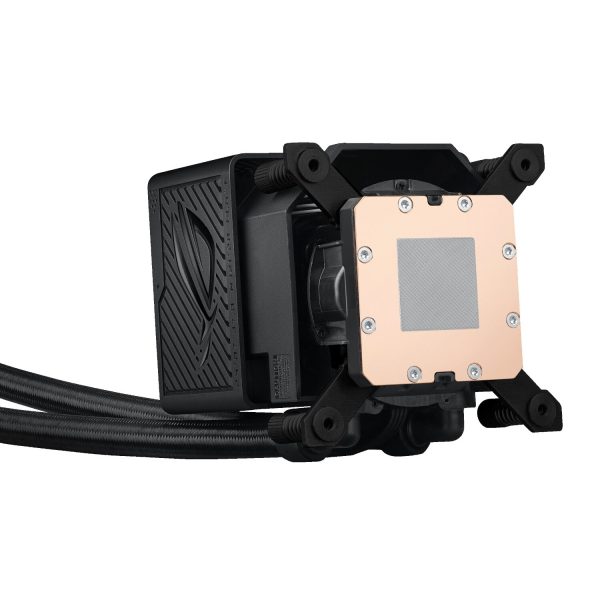 The cooler features a robust 399.5 mm aluminium radiator paired with three 120 mm ROG magnetic daisy-chainable ARGB fans. Each fan operates between 600 to 2200 RPM, delivering up to 70.07 CFM of airflow with a static pressure of 3.88 mmHâ‚‚O. These fans are equipped with Gen 2 ARGB LEDs, enabling dynamic lighting effects that can be fully customised through Armoury Crate.