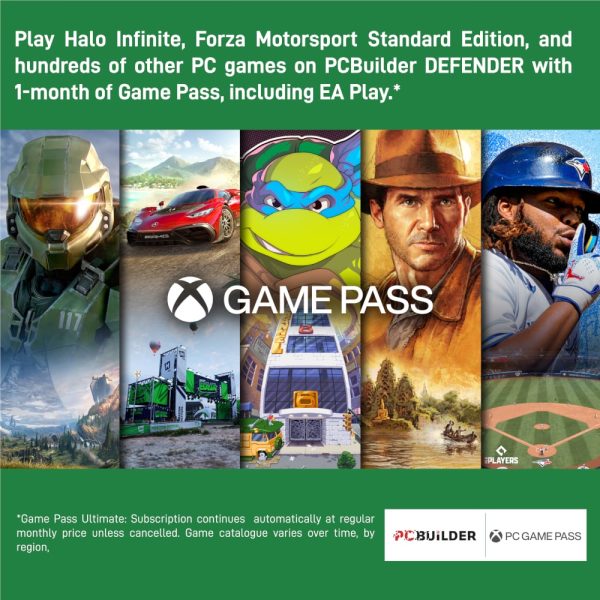 The PCBuilder DEFENDER Windows 11 Gaming PC also includes one month of PC Game Pass including EA Play. Play over 100 high-quality PC games, in various genres such as Halo Infinite, Forza Horizon 5, and Minecraft on your new gaming rig. With new games added all the time, there’s always something new to play from day one.