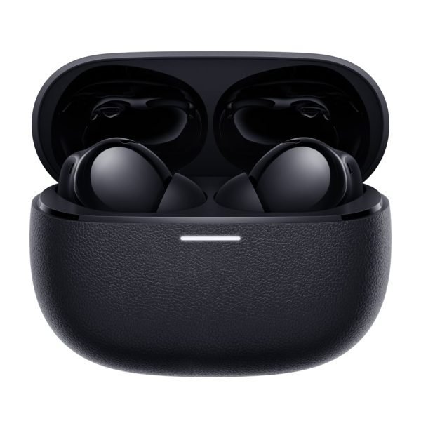 The black version features vegan leather accents on its case’s lower part for added texture and sophistication. The ear stems boast a multi-layer coating process that creates a unique marble texture effect that is subtle yet charming.